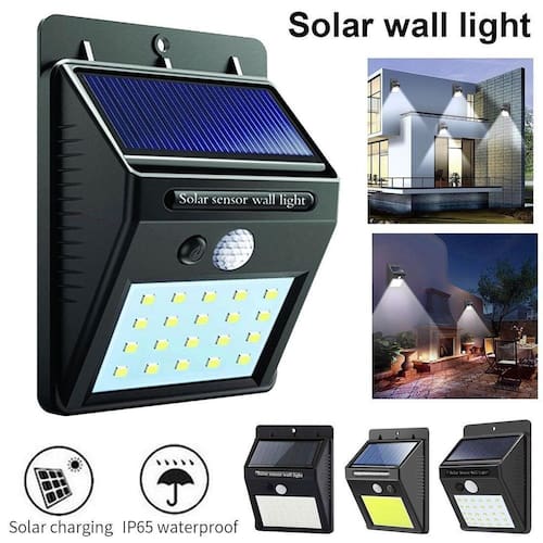 - potência: 0,55 watts - material: plástico abs - sensor de luz solar de energia: 2,4 watts, 270 lumens - fonte de energia: solar - 20 leds smd 2835 - bateria: 3. 7 v 18650 1200 mah - painel solar: 6 v/1 w - nível de proteção prova dágua: ip67 - distância de detecção: 3 m - tempo de vida do led: 50000 h - tipo de instalação: fixado na parede - sensor de movimento ângulo: 120º - interruptor on/off - tamanho do produto: 124x95x48mm
