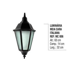 Luminária Colonial Meia Cara Italiana em Alumínio e Vidro