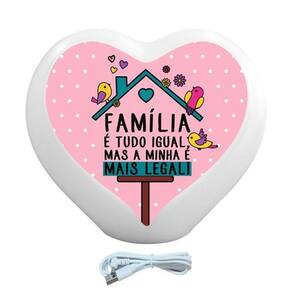 Perfeita para sua decoração, a Luminária Coração Família é Tudo Igual USB, vai encantar o seu quarto, aquele seu cantinho especial e até mesmo o seu escritório. Além de ser um item perfeito, ela pode agregar no espaço de leitura por ser uma luz difusa, o que não agride a visão, além de deixar o local com uma iluminação mais baixa. Sendo Bivolt com a Luminária Coração Família é Tudo Igual USB, você não precisa se preocupar com nada, basta ligar na tomada e ligar.