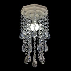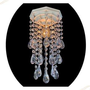 Especificações do produto: Base plafon octogonal de 17 cm em acrílico na cor branca; Altura do lustre 31 cm; Castanhas de acrílico transparente; Argolas de inox não enferrujam ; Voltagem: Bivolt 127v 220v; Bocal para lâmpada modelo E27. Lustre enviado montado pronto para instalação. Lâmpada não inclusa.