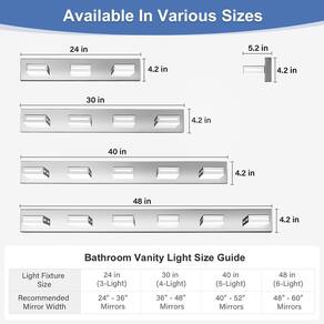 - Iluminação versátil sobre o espelho: luminárias minimalistas de banheiro sobre espelho se encaixam em espelhos quadrados/redondos. Escolha de 61 cm (3 luzes) a 122 cm (6 luzes). Combine múltiplos para luminárias de vaidade sem costura em grandes espaços