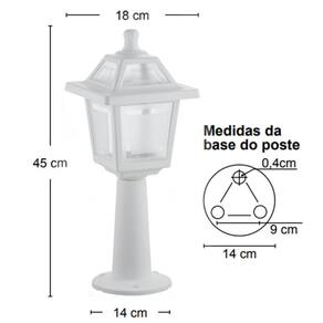 Luminária De Chão 18x45cm Poste Balizador Branco Colonial Jardim Muro Dital.