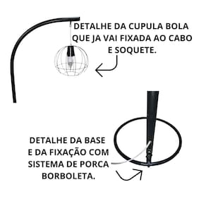A Luminária de Chão Nívia é a escolha ideal para quem busca iluminação funcional aliada a um design moderno e elegante. Produzida em estrutura metálica resistente, possui acabamento sofisticado e cúpula aramada em formato bola, que valoriza a lâmpada e cria um efeito de luz aconchegante e decorativo. Seu formato curvo e base firme garantem estabilidade e segurança, enquanto o estilo contemporâneo combina perfeitamente com ambientes como sala de estar, quarto, escritório, home office ou cantos de leitura. A cúpula já acompanha soquete e cabo fixados, facilitando a instalação e o uso no dia a dia. Além de decorativa, é uma luminária versátil, ideal para compor ambientes modernos, industriais ou minimalistas, trazendo charme e personalidade ao espaço. Destaques do produto: - Luminária de chão / abajur decorativo; - Estrutura em metal de alta durabilidade; - Cúpula aramada moderna tipo bola; - Design elegante e contemporâneo; - Ideal para sala, quarto e escritório; - Base estável com sistema de fixação seguro; - Fácil montagem e uso;