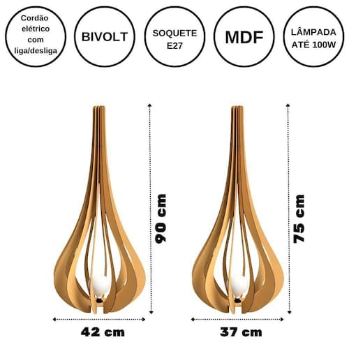 Kit com 2 Abajur Grande de Chão MDF Luminária