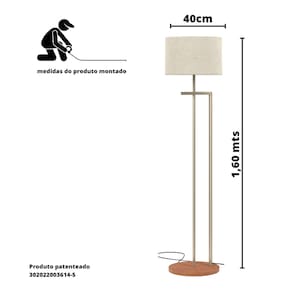 Luminária de Chão Salone   Sofisticação, Beleza e qualidade são os adjetivos perfeitos para enquadrar este produto.   Móvel produzido com matéria prima de 1ª qualidade. Produto para pessoas exigentes que prezam os mínimos detalhes de qualidade e acabamento.   Voltagem: Bivolt (110/220v) Acabamento em Pintura Eletrostática Cúpula em Acetato com Acabamento em Tecido Brugges Estrutura em Aço Carbono com Reforço 4 hastes   - Não Acompanha Lampada.   DIMENSÕES DO PRODUTO   Altura: 160cm Diâmetro: 40cm   Palavras chave: Luminária de piso Abajur de Chão Luminaria industrial pés de ferro Escritório recepção sala de estar home office  hall de entrada consultório hotel