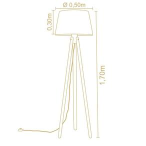 • 1 Luminária De Chão Trippé Madeira 1,70m Cúpula 0,30x0,50m