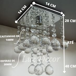 Luminária De Cristais Base De Inox 14x14cm Para Quarto - Tamanho: 40cm / Voltagem: Bivolt