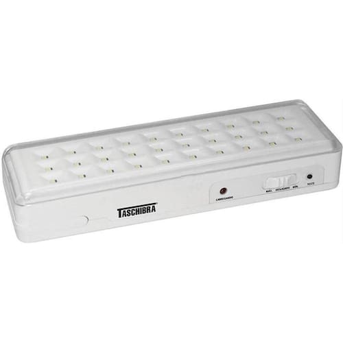 Luminaria emergencia taschibra 30 leds - tle 05deixe seu ambiente mais iluminado, com as luminárias cheias de estilo da taschibra. As luminárias se adequam a qualquer ambiente, são práticas e resistentes.Características gerais:possui acendimento automático, quando ocorre a falta de energia elétrica.Possui led indicador de presença de tensão na rede.Pode ser utilizada como lanterna.30 leds de alto brilho.Circuito de carga com tecnologia smart, que restabelece a autonomia mais rapidamente, garantindo a vida útil da bateria.Até 6 horas de autonomia.Fluxo luminoso: botão máx. 120lm e mín. 80lm.Utiliza: bateria lítio 3,7v 1300ma.Tempo de carga da bateria 12 horas.Com alça de fixação. Potência 2w - autovolt.Ângulo de abertura do facho luminoso 120º.Temperatura de cor 6500k.Bateria lítio - maior durabilidade.Especificações técnicas:marca: taschibra.Ref.: tle-05.Cor: branco.Dimensões aproximadas do produto: lxaxp 21cm x 05cm x 05cm. Peso do produto: 0,300 kg.Peso do produto com embalagem: 0,400 kg.Foto: imagem meramente ilustrativa. Carrapeta, aqui tem qualidade