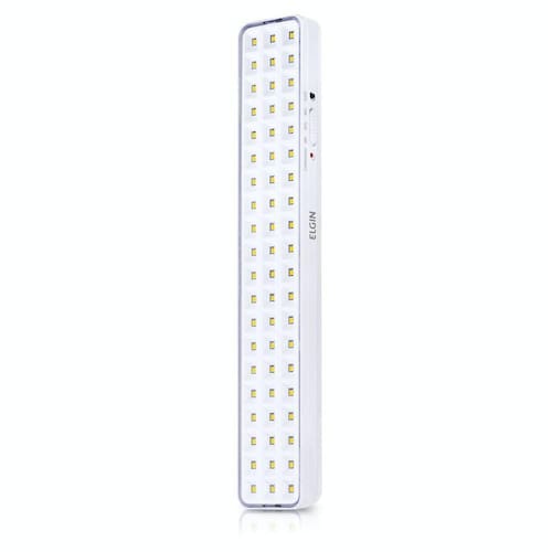Luminaria De Emergencia - 60 Leds - BivoltLuminária de emergência LED, leve e portátil, pode ser utilizada em casas, escolas, hotéis, restaurantes, academias, shoppings, supermercados ou qualquer outro local que não possa ficar no escuro quando ocorre uma queda de energia.É uma solução prática e segura para evitar pânico ou que as atividades sejam interrompidas no momento de falta de energia.Quando a luminária detecta a falta de energia é acionada a sua luz de emergência automaticamente.Por ser portátil, pode ser usada também como lanterna, basta estar carregada.Sua bateria interna é do tipo selada. Apresenta dois tipos de fluxo de luz, máxima e mínima, sendo a duração da bateria na intensidade máxima de até 3 horas e na mínima de até 6 horas.Produzida com circuito de carga com tecnologia SMART, que restabelece a autonomia mais rapidamente, garantindo a vida útil da bateria.Luminária de emergência de alta intensidade e longa autonomia para atuação automática na falta de energia.Acompanha cabo e plugue para conexão em 127V ou 220V. Portátil, também pode ser instalado na parede ou no teto, possui alça retrátil, 2 opções de intensidade e bateria de lítio que permite longa durabilidade.- Potência: 3W- Temperatura de Cor: 6500K Branca Fria- Tensão: 100 - 240V- Frequência: 50/60Hz- Fluxo Luminoso: Min: 90 lm / Max: 200 lm- IRC: menor que 70- Autonomia Fluxo Mín/Máx.: 7 horas / 3 horas- Tempo de recarga: 48 horas ( 127V ) / 24 horas ( 220V )- Tensão da bateria: 3,7V- Capacidade da bateria: 1,8Ah- IP: 20- Temperatura de operação: (-5 a +45) graus célcios Dimensões (A x L x P): 34,2 x 5,6 x 3 cmPeso Líquido: 240g