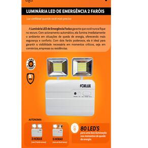 A Luminária de Emergência Led 8w 6500k 2 Faróis Foxlux é um dispositivo de iluminação automática de ambientes para situações de queda de energia.
