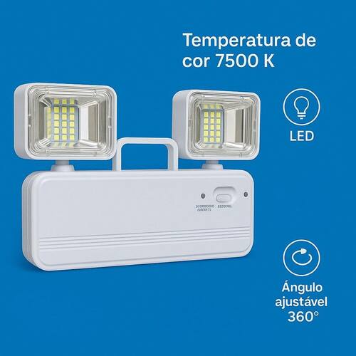 Luminária de Emergência Luz Led Para Saídas De Emergência Garanta segurança e iluminação imediata com esta luminária de emergência LED 8W, ideal para residências, comércios e escritórios. Com 1200 lúmens, ela proporciona luz branca fria intensa 7500K , perfeita para momentos de falta de energia. Seu sistema bivolt automático 110V/220V facilita a instalação em qualquer ambiente. A luminária acende automaticamente quando a energia cai, e sua bateria recarregável interna garante horas de autonomia. Design compacto e moderno na cor branca, pode ser fixada ou Utilizado portátil. Produto confiável, durável e eficiente. Especificações Técnicas Tipo: Luminária de emergência LED Potência: 8W Fluxo Luminoso: 1200 lúmens Temperatura da Cor: 7500K branco frio Tensão: Bivolt automático 110V / 220V Cor: Branco Autonomia: De 2 a 6 horas dependendo do uso Ativação automática: Sim Instalação: Parede ou uso portátil Bateria: Recarregável interna Marca: Não Informado Ean: 7905600100538
