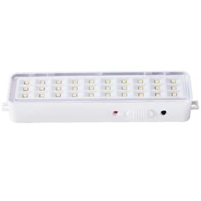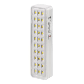 Luminária De Emergência Recarregável 30 LEDs Lanterna A luminária 30 LEDs foi fabricada com a tecnologia LED, desenvolvida para iluminação de emergência. Pode ser utilizada em ambientes internos e é ideal para escritórios, hotéis, restaurantes, estabelecimentos comerciais, residências entre outros. Possui bateria de lítio, que proporciona uma vida útil mais longa e uma melhor performance do produto. Seu design moderno foi pensado para que se adeque aos mais diversos ambientes, harmonizando com a arquitetura do espaço e trazendo ainda mais elegância ao projeto. Econômica, proporciona autonomia com maior durabilidade e ótima iluminação. Pode ser facilmente instalada, manuseada e transportada. Acende automaticamente na falta de energia elétrica. Informações TÉCNICAS: Fluxo luminoso máximo: 100 lúmens Quantidade de LEDs: 30 Área de Cobertura: 25m Led indicativo de funcionamento: Sim Seleção de fluxo máx. E min.: Sim Bateria: 3.7 V 500 mAh Alimentação: 100-240 V 50-60 Hz Consumo de energia: 1 W Autonomia: 2,5 horas máx//5 horas mín Temperatura de operação: -10C a 60 C 01h70C Temperatura de cor do LED: 5700 K - 8000 K Grau de proteção: IP20 Peso: 125 g Dimensões: 175 x 49 x 25 mm Materiais de construção: PP/PS Botão de teste: Sim Marca: Não Informado Ean: 7905609822790