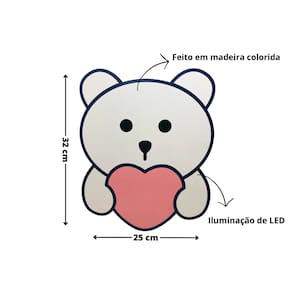 Luminária de ursinho love é feita em MDF colorido de 3mm, iluminação de LED com fonte de energia bivolt (110/220v) com acabamentos feitos a mão com muito carinho e dedicação. Ideal para decoração de ambientes como quartos infantil, sala de estar, dentre outros.