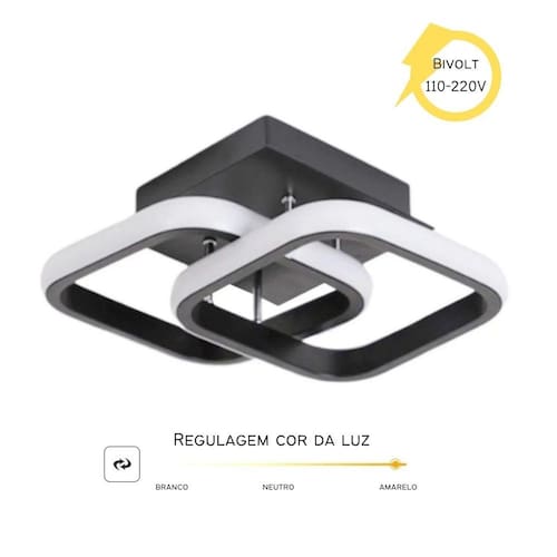 Características do produto: Potência: 22w Tensão: 85v - 265 v bivolt Temperatura da cor ajustável: 3000k amarelo - 4500k neutro - 6000k branco Dimensões da luminária: 24x24x10cm Material: metal e acrílico