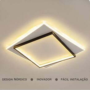 Modelo 2 quadrados assimétricos, extremamente elegante e moderno. Possui comprimento de 40 cm e largura de 40cm. Luminária com um ótimo tamanho. As luzes são emitidas pelas bordas, tornando a iluminação mais indireta e agradável em seu ambiente.