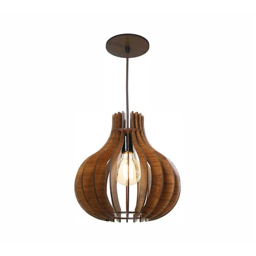 Luminária De Madeira Pendente Ripado Gota Imbúia 30Cm Medidas: Diâmetro 30cm x Altura 30cm Material: Madeira Cor: Imbuia Cabo elétrico: Tecido Marrom 1 Mt Lâmpada: E-27 - Não inclusa Sugestão de Lâmpadas: LED Retrô Voltagem: Bivolt Recomendações gerais: Uso em ambiente interno, não expor ao tempo, tal como sob a ação da chuva e sol. Para limpeza, utilizar pincel, espanador ou pano de microfibra seco. Por se tratar de um produto natural, a madeira pode apresentar tonalidade e veios levemente diferentes entre um produto e outro. Marca: Não Informado Ean: 7898693960045