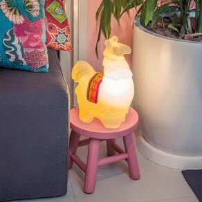 A Luminária de Lhama é bivolt e utiliza lâmpada LED de até 5W ou fluorescente compacta (não inclusa).