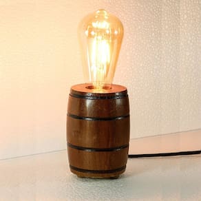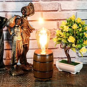 Luminária de mesa em madeira maciça Modelo barril Acabamento acetinado na cor imbuia - fabricada em madeira maciça, legalizada e sustentável; - dimensões: 12cm de altura e 9cm de diâmetro largura ; - soquete padrão e27; - extensão de 1,2m de comprimento com tipo gangorra; - não acompanha a lâmpada Marca: Não Informado Ean: 7897072197454