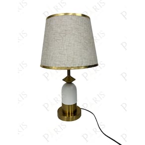 Luminária de Mesa Abajur em Metal Dourado e Branco com Cúpula Branca 47cm 1E27 14691-PL