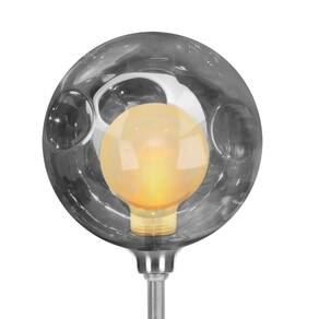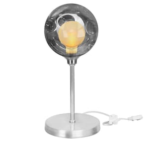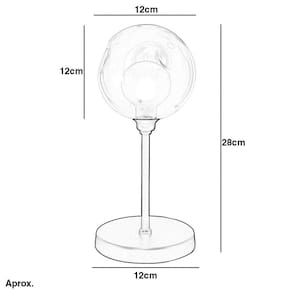 Com aproximadamente 12 cm de base, 12 cm de largura x 12 de altura da bola, totalizando aproximadamente 28 cm de altura total da luminária