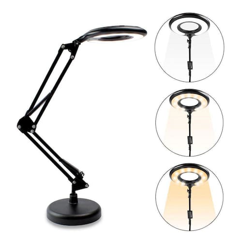 - Anel de luz circular composto por diversos LEDs. - Articulação permite que a luminária seja ajustada em vários ângulos, tamanhos e direções. - Regulagem de Luz, possui uma opção de ajuste de intensidade da luz - Temperatura de Cor Ajustável: Isso permite que você escolha entre luz mais quente amarelada e luz mais fria azulada .