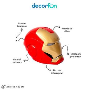 Informações adicionais: Compatível com lâmpadas compactas fluorescentes até 15W ou LED até 5W (lâmpadas não inclusas) (E-27)Transforme seu espaço com a força e a tecnologia do Homem de Ferro! A Luminária de Mesa Capacete Homem de Ferro Marvel traz todo o carisma do gênio, bilionário e herói para a sua decoração. Com um design fiel ao icônico capacete do Iron Man, ela proporciona um toque moderno e geek para escritórios, quartos e setups gamers.