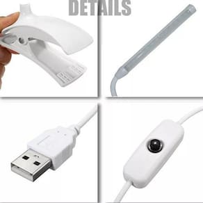 Luminária de mesa com garra manicure maquiagem leitura usb Luminária flexível com clipe para fixação em mesa, notebook ou superfície plana. Ideal para leitura, camping, etc, pois funciona em qualquer porta usb. Interruptor liga e desliga. Quantidade de led: 13 leds. Base: clipe Tensão de entrada: dc 5 v Alimentação: porta usb Temperatura de cor: branco frio 6000-6500 k Haste flexível: 17 cm Comprimento do clipe: 9 cm Dimensões da base: 9 x 4 x 3 cm. Altura máxima: 40 cm. Cabo usb: 11m5 cm. Material: abs+ps. Peso 90 g.