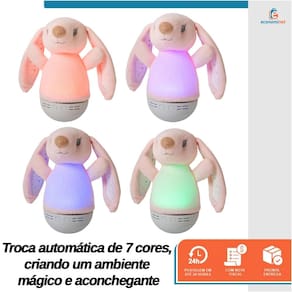 Destaques do Produto: Iluminação Multicolorida: Troca automática de 7 cores, criando um ambiente mágico e aconchegante. Luz Noturna: Um companheiro perfeito para o sono, com iluminação suave que relaxa e tranquiliza. Melodias Tranquilizantes: Integra músicas suaves para embalar momentos de descanso e lazer. Temporizador de 30 Minutos: Para desligamento automático, ideal para otimizar o uso da bateria.