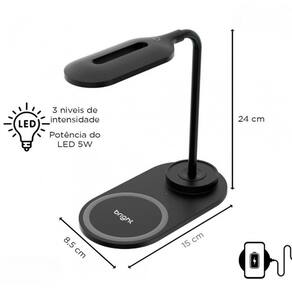 1-Luminária de Mesa Led Carregador sem Fio Indução Celular Touch Articulável
