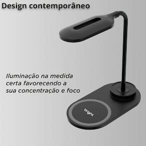 Com um carregador sem fio de 15W embutido, essa luminária é perfeita para acompanhar o seu dia a dia agitado. Basta posicionar seu smartphone compatível com carregamento wireless na base da luminária e pronto, ele começará a carregar de forma rápida e conveniente, sem a necessidade de fios ou adaptadores.
