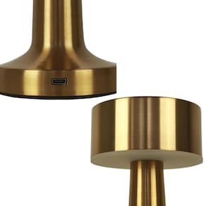 Luminária abajur mesa led jimp dimerizável s/ fio recarregável taschibra ouro Características gerais do produto: Benefícios do produto: recarregável, dimerizável, 3 temperaturas de cor e design moderno. Dimensões axlxp cm : 21,5 x 9 Formato: cone Cor da luz: 6500k frio - 4000k neutro - 3000k quente Produzido em: plástico de engenharia, alumínio, placa de circuito impresso e componentes eletrônicos Voltagem: bivolt em 110v e 220v Alimentação: usb 5v 1a Cor acabamento: ouro Potência: 2w Fluxo luminoso: 50 lumens Cor do cabo: preto Irc: 80 Para uso em soquete: led já integrado, não se utiliza soquete Comprimento do cabo: 1.25 metros, altura regulável : 1 ano junto ao fabricante Aplicação: mesa Grau de proteção: ip20 Sistema de aterramento: não Ajuste de intensidade dimerizar : sim Acompanha o produto: 01 luminária led : 90 dias Marca: Não Informado