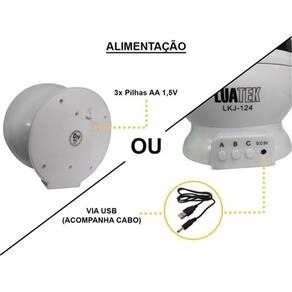 - é bivolt; - funciona com 4 pilhas aaa não inclusas ou conectado no usb na energia; - opções de cores da base: azul, rosa, branco e preto;