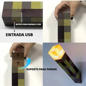 Luminária Tocha com luz de LED brilhantes, que podem ser usadas na mesa, luz noturna ou parede. Mude a cor da luminária em 1 clique! A tocha tem 4 cores diferentes: azul, verde, amarelo e laranja.
