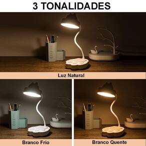 Muito prática para uso no dia a dia, possui ainda suporte ajustável para melhor posicionamento da luminária e luz em led permite uma melhor iluminação do ambiente.