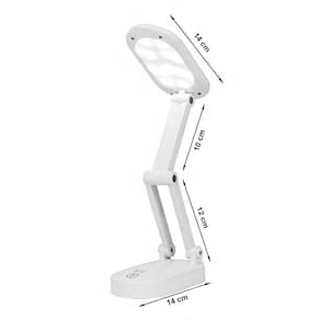 A Luminária tem uma haste articulada que facilita o direcionamento do foco de luz para o local desejado. Além disso, ela também conta com 3 temperaturas (Branco Frio, Branco Quente e Misto), e é totalmente dobrável. Desta forma, você pode levar a sua luminária para qualquer lugar ou armazená-la em gavetas e armários sem ocupar muito espaço.