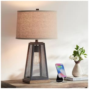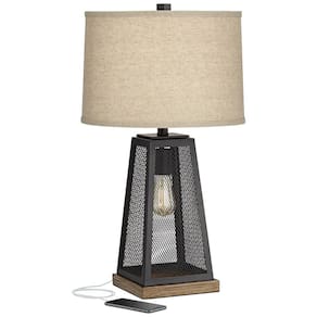 Usa uma lâmpada de base média padrão E26 de no máximo 150 watts não incluída para a luz principal. Interruptor de soquete de 4 vias. Design de lâmpada de acento de luz noturna. Inclui uma lâmpada noturna de filamento LED Edison de 7 watts âmbar. Comparável a uma incandescente de 60 watts. A porta USB integrada permite recarregar facilmente telefones inteligentes. Porta USB tipo 2A. Estilo rústico de fazenda da Franklin Iron Works. Acabamento em bronze. Base de malha metálica. Sombra de material de serapilheira Marca: Não Informado