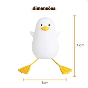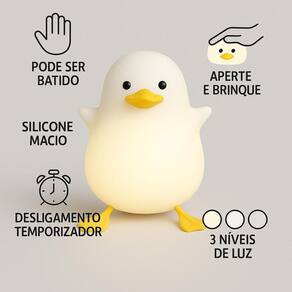 Luminária De Silicone Noturna Recarregável Toque Cores Pato Luminária Infantil Pinguim - Luz Noturna LED Deixe as noites das crianças mais aconchegantes e divertidas com a Luminária Infantil Pinguim. Com design encantador e luz suave em LED, ela cria um ambiente acolhedor, perfeito para ajudar os pequenos a relaxarem antes de dormir. Seu formato divertido e delicado é ideal para decorar quartos infantis, trazendo charme e segurança durante a noite. Características: Formato: Pinguim sentado com pés pendentes Luz LED suave e econômica Material macio e seguro para crianças Ideal como luz noturna ou decoração Fácil de usar e transportar Especificações Técnicas - Material: ABS/Silicone - Medidas: 13 cm altura - Modos de cores: Branco Quente, Vermelha, Azul, Amarelo, Rosa, Verde + Modo automático e oscilante - Potência: 1.5W - Tensão: 5V/1A - Bateria: 1200mAh - Autonomia: 10 a 16 horas - Tempo de carga: 2 a 3 horas Cuidados e Conservação - Limpar com pano seco e macio - Evitar exposição direta ao sol ou calor excessivo - Não utilizar produtos químicos na limpeza Conteúdo da Embalagem - 1x Luminária LED de Silicone Pato - 1x Cabo USB Tipo-C para recarga Perfeita para presentear e transformar o cantinho das crianças em um espaço cheio de magia e conforto O produto é novo Sim, todos os produtos são novos. Caso o produto não supra minha necessidade posso devolver ou trocar O produto tem Sim, todos os produtos têm . Se ainda houver alguma dúvida estamos a disposição para responder de segunda-feira a sexta-feira das 08:00 às 17:30.