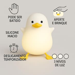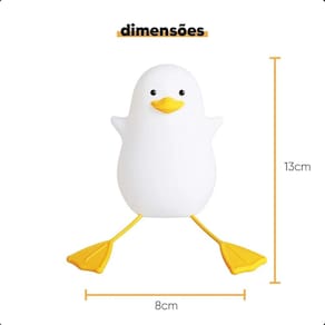 Luminária De Silicone Noturna Recarregável Toque Cores Pato Luminária Infantil Pinguim - Luz Noturna LED Deixe as noites das crianças mais aconchegantes e divertidas com a Luminária Infantil Pinguim. Com design encantador e luz suave em LED, ela cria um ambiente acolhedor, perfeito para ajudar os pequenos a relaxarem antes de dormir. Seu formato divertido e delicado é ideal para decorar quartos infantis, trazendo charme e segurança durante a noite. Características: Formato: Pinguim sentado com pés pendentes Luz LED suave e econômica Material macio e seguro para crianças Ideal como luz noturna ou decoração Fácil de usar e transportar Especificações Técnicas - Material: ABS/Silicone - Medidas: 13 cm altura - Modos de cores: Branco Quente, Vermelha, Azul, Amarelo, Rosa, Verde + Modo automático e oscilante - Potência: 1.5W - Tensão: 5V/1A - Bateria: 1200mAh - Autonomia: 10 a 16 horas - Tempo de carga: 2 a 3 horas Cuidados e Conservação - Limpar com pano seco e macio - Evitar exposição direta ao sol ou calor excessivo - Não utilizar produtos químicos na limpeza Conteúdo da Embalagem - 1x Luminária LED de Silicone Pato - 1x Cabo USB Tipo-C para recarga Perfeita para presentear e transformar o cantinho das crianças em um espaço cheio de magia e conforto O produto é novo Sim, todos os produtos são novos. Caso o produto não supra minha necessidade posso devolver ou trocar O produto tem Sim, todos os produtos têm . Se ainda houver alguma dúvida estamos a disposição para responder de segunda-feira a sexta-feira das 08:00 às 17:30. Marca: Não Informado