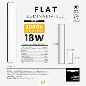 Cor: Preto Temperatura de cor: 3000K - Branco Quente Fluxo luminoso: 2000lm Potência: 18W Frequência: 60Hz Fator de Potência: 0.5 Tensão: 100-240V Bivolt Temperatura de operação: 0C a 40C Eficiência Luminosa: 110lm/W Ângulo: 125 IRC: 80 UGR: 28 Grau de Proteção: IP20 Peso: 185g Dimensões: 590 x 60 x 36mm Marca: Não Informado Ean: 7898696189900