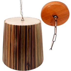 Luminária De Teto Pendente Em Madeira Grande Redonda De 1,5m -
