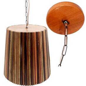 Luminária De Teto Pendente Em Madeira Média Redonda De 1,5m -