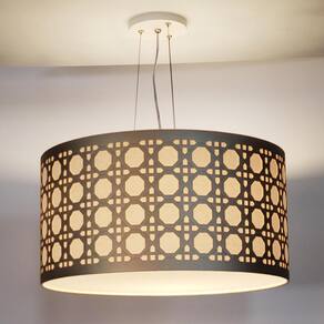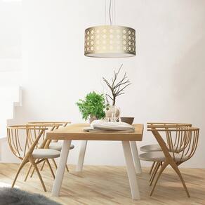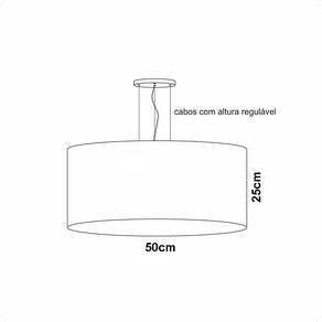 Luminária de Teto Pendente Palha 50x25 Bronze Lustre Pendente em tecido 50cm: Recorte Palha na tonalidade Bege; Cúpula acabamento em tecido Algodão;Cor Cru: Dimensões: Largura 50cm x Altura 25cm;Cabos: Medida ajustavel, podendo chegar há 1 metro e 20 centímetros; Cúpula com fechamento inferior para esconder as lâmpadas;Quantidade Lâmpada: 03 Indicado lâmpada LED 15w- Não inclusas;Voltagem: Bivolt; Soquete: E-27 Comum;Fixação: Laje, gesso, madeira e Pvc.