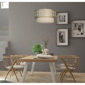Luminária de Teto Pendente Palha Cúpula Dupla Bronze 50x25 Lustre Pendente em tecido 50cm: Cúpula acabamento em tecido: Linho e Algodão;-linho Pérola;-algodão Cru;Detalhe em Pet cor:Bronze. Dimensões Total: Largura 50cm x Altura 25cm;Cúpula interna 40cm x 25cm.Cúpula externa 50cm x 16cm.Cabos: Medida ajustavel, podendo chegar há 1 metro e 20 centímetros; Cúpula com fechamento inferior para esconder as lâmpadas;Quantidade Lâmpada: 03 Indicado lâmpada LED 15w- Não inclusas;Voltagem: Bivolt; Soquete: E-27 Comum;Fixação: Laje, gesso, madeira e Pvc.