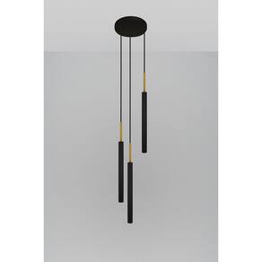 Tudo para iluminar seu ambiente com muito charme Perfeito para todos os ambientes Modelo: pendente Cor es : preto/dourado Material: alumínio Canopla de teto: alumínio 18cm Cabo de alimentação regulável: 1,5m Luminária: 3 soquete g9 Número de lâmpadas: 3 lâmpadas não inclusas Voltagem: 127v/220v Medida: 43 x 2,5 cm Peso líquido: 0,75 kg Conteúdo da embalagem: 1 luminária de teto