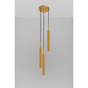 Tudo para iluminar seu ambiente com muito charme Perfeito para todos os ambientes Modelo: pendente Cor es : dourado Material: alumínio Canopla de teto: alumínio 18cm Cabo de alimentação regulável: 1,5m Luminária: 3 soquete gu10 Número de lâmpadas: 3 lâmpadas não inclusas Voltagem: 127v/220v Medida: 43 x 3,5 cm Peso líquido: 1,8 kg Conteúdo da embalagem: 1 luminária de teto