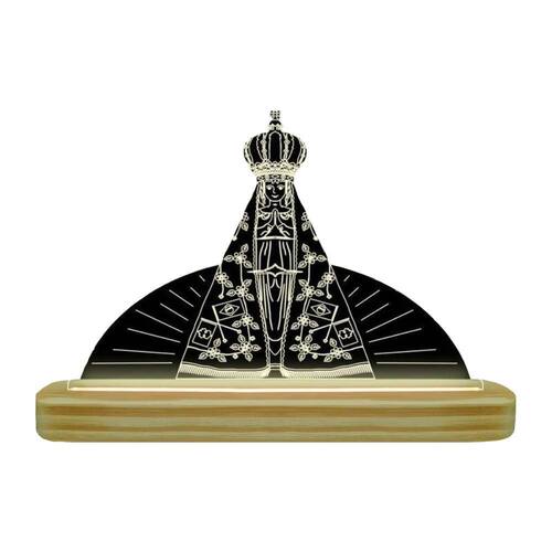 A Luminária Decorativa Nossa Senhora Aparecida possui base de madeira reaproveitada e duração de 15 a 20 mil horas. Ideal para você que ama objetos colecionáveis e itens de decoração versáteis e irreverentes. Possui consumo de 1W baixíssimo . Excelente dica de presente para quem é devoto