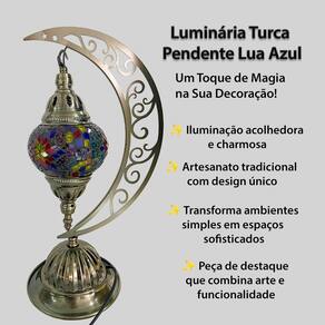 Luminária Decorativa Pendente Lua Colorida 40cm Codigo do produto: TB005669 Descrição: Luminária Turca o toque perfeito que faltava em seu lar Produzida na Turquia pelos mais talentosos artesãos, uma peça sofisticada com funcionalidade de iluminar a estética calorosa e a atraente das cúpulas em mosaico colorida. Os padrões com estrelas compostos artesanalmente nas peças criam lindos efeitos luminosos no ambiente, deixando o ambiente extremamente acolhedor. O Mosaico de vidro colorido com formas por todo o espaço promove Impacto visual na decoração de interiores, com esta arte da Turquia a iluminação se converte em uma verdadeira obra de arte. Vantagens: Este abajur decorativo se tornará o grande atrativo da decoração iluminando o ambiente de forma inusitada com as cores da Turquia. CARACTERISTICAS SURPREENDENTES: - Possuem um excelente acabamento e DESIGN SOFISTICADO; - Acrescenta um toque de DELICADEZA único á sua sala ou quarto; - Produto ARTESANAL em mosaico de vidros; - Transforma qualquer espaço pois possui AUTENTICIDADE e ESTILO ÚNICO; - Produzida com um material incrivelmente COLORIDO, NATURAL e DURADOURO. - Marcam ambientes internos ou até mesmo espaços abertos. Produtos são artesanais e podem apresentar cores, estampas, bordados, peso, tamanho e pinturas variados, o que não interfere em sua qualidade Como inserir a lâmpada: Para inserir a lâmpada em sua luminária turca, certifique que o botão de ligar/desligar esteja no modo desligado e a tomada de energia desligada. Após isso, basta retirar a cúpula de vidro pela parte de baixo cuidadosamente. Haverá uma presilha na parte interna da cúpula que garante o apoio junto à base da luminária. Basta retirar com cuidado e segurar a presilha . Insira a lâmpada soquete fino e feche a luminária, para isso, segure as presilhas internas em ambos os lados e coloque novamente presa na base da luminária. Se preferir, prenda um lado da presilha interna e com o apoio das mãos, empurre o outro lado da presilha para dentro da cúpula. característica: Altura: 40cm Largura: 25cm Comprimento: 16cm Botão Liga/Desliga Bivoltagem 110V ou 220V Material do Abajur : Vidro Turco processo: Feito à Mão Metal: Liga de Zinco Tonalizada Bronze Tensão/ Frequência: Bivolt 110V/220V Cor Predominante: azul Tamanho da Fiação: 1,08 Metro Tipo de Lâmpada: E14 A mesma de Geladeiras Não acompanha. Conteúdo: 1 x Luminária turca Mosaico Codigo do fornecedor: A30020/ 9370 Marca: Não Informado Ean: 7894548193026