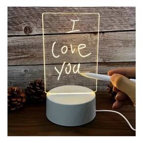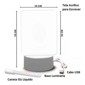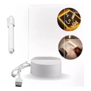- Funcionamento prático por USB. - Material acrílico transparente da placa, com efeito de luz surpreendente. - Cor da luminosidade é morna e deixa o ambiente confortável. - Ótima ideia de presente. - As mensagens são facilmente removidas pela borracha na parte superior da caneta. - Material leve - Baixo consumo de energia.
