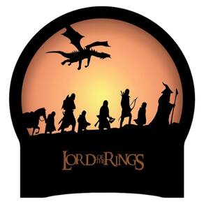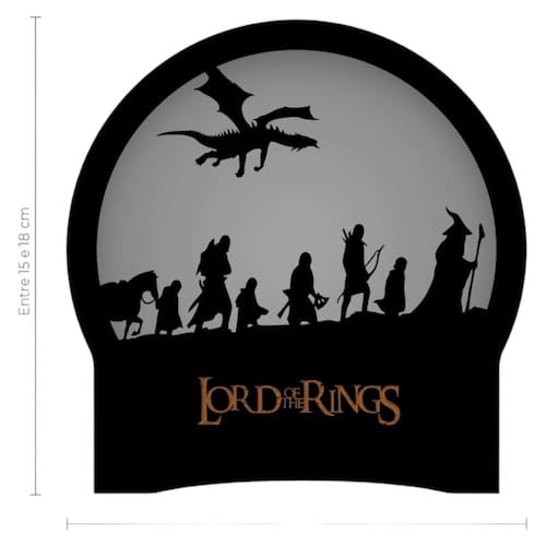Luminária temática em MDF com estampa digital do Senhor dos Anéis. Medindo 16x15x8cm, inclui papel especial para transpassar a luz e funciona com pilhas incluídas.