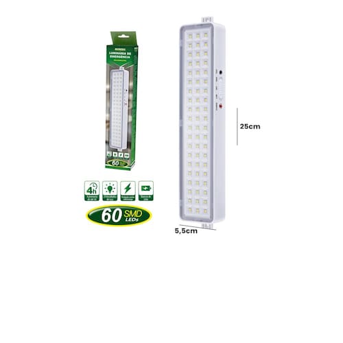 Luminária Emergência 5w 60 Leds Recarregável 6500k Cor Branco 110v/220vDiga adeus às velas e lâmpadas de querosene. A magia do século XXI e sua tecnologia chegaram para resolver a sua vida. Sua luz de emergência Casita Modelo ALL50082 tornará as quedas de energia imperceptíveis.Tempo de duração idealGraças a que sua bateria lhe permite funcionar durante 6h, você poderá continuar com suas tarefas mesmo quando não tiver luz natural. Este dispositivo iluminará com eficácia todos os espaços do seu lar, quando você mais precisar.Para imprevistos, recarregávelPor possuir uma bateria recarregável, você poderá usá-la quantas vezes precisar. É importante que você se certifique de respeitar o seu tempo de carregamento quando a energia elétrica estiver funcionando, para garantir o funcionamento adequado.Para imprevistos, recarregávelPor possuir uma bateria recarregável, você poderá usá-la quantas vezes precisar. É importante que você se certifique de respeitar o seu tempo de carregamento quando a energia elétrica estiver funcionando, para garantir o funcionamento adequado. Seu indicador irá avisá-lo quando desconectá-la.Marca: ALFACELLModelo: ALL50082Cor: BrancoUnidades por kit: 1Tipo de luz: LEDQuantidade de luzes LED: 60Fluxo luminoso mínimo: 80 lmFluxo luminoso máximo: 400 lmQuantidade de faróis: 60Autonomia mínima de horas: 3 hAutonomia máxima de horas: 6 hTempo de carga da bateria: 12 hInclui bateria recarregável: SimTipos de alimentação: ElétricaTipo de bateria: Li-ionCom Wi-Fi: NãoCapacidade da bateria: 1,2 AhFabricante: IMPORIENTEAmbientes: Corredor, Escritório, Interior, Quarto, SalaCom proteção contra sobrecarga: NãoCom proteção de sobre descarga: NãoCom indicador de carga de bateria: SimPotência: 5 WLargura: 5,65 cmAltura: 3 cmComprimento: 20,31 cmMaterial: Policarbonato à prova de fogoCom alça: NãoCom botão de ligar: SimCom botão de teste: SimCom ligado automático: SimCom suporte para travar: SimInclui pilhas: Não